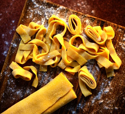 Add half of the tagliatelle to the boiling water and gently stir once to prevent sticking. Cook for 2–3 minutes, depending on how thinly the pasta was rolled. Gluten-free pasta will be tender rather than firm like wheat pasta. Remove using tongs, toss immediately with your favourite sauce, and serve. Repeat with the remaining pasta.